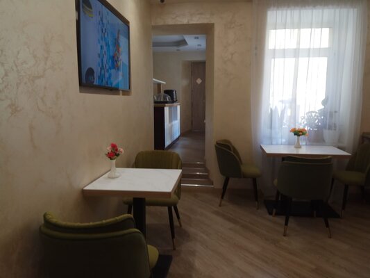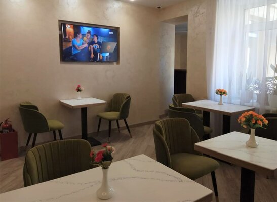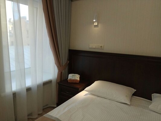 Мы предлагаем 19 комфортабельных номеров различных категорий. Все номера оснащены кондиционером, холодильником, сейфом, телефоном, бесплатным Wi-Fi, душевой кабиной, халатами и полотенцами. В вашем распоряжении уютное кафе с обновленным дизайном, где по утрам сервируется богатый шведский стол. Принимаем к оплате кредитные карты, предоставляем визовую поддержку. Мы заботимся о комфорте всех гостей и предлагаем два номера (эконом Арт и Делюкс Арт), специально оборудованных для гостей с ограниченными возможностями. В них предусмотрены широкие дверные проемы, санузлы со специальными поручнями, низкие раковины, сидения, кнопки/телефоны для вызова персонала, а также возможность подъехать на коляске к кровати или столику.