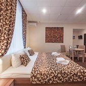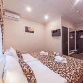 Номера оборудованы кабельным ТВ, телевизором, кондиционером, мини-баром. Имеется сейф для хранения различных ценностей. В Вашем распоряжении собственная ванная комната, в которой Вы найдете бесплатную гигиеническую косметику, и халаты с тапочками для Вашего комфорта. Приятным дополнением станет наличие свободного доступа к сети Wi-Fi.