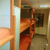 Для размещения предлагаются койко-места в мужском или женском номере, также есть отдельные семейные номера в которых имеется вся необходимая мебель и техника для комфортного проживания. В ванной комнате установлен стандартный набор сантехники.