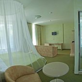 Отель расчитанный на различные категории гостей, предоставляет широкий спектр услуг проживания, питания, проведения корпоративных мероприятий, конференций и банкетов. В отеле вы можете заказать загородный ресторан для свадьбы, банкетный зал, конференц зал, номер для новобрачных и многое другое.
