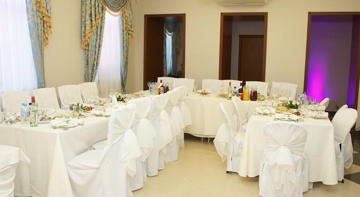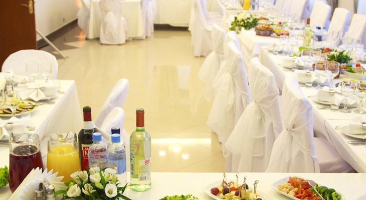 По утрам для гостей сервируют полезные и сытные завтраки. На территории парк-отеля обустроено уютное кафе. Здесь предоставят отличное обслуживание, приятную атмосферу и предложат попробовать изысканные блюда и напитки. Также, имеется большой, роскошный банкетный зал с утонченным интерьером и изысканной мебелью. Здесь гости смогут провести деловую встречу или торжественное мероприятие, к примеру, свадьбу, юбилей или корпоративную вечеринку.