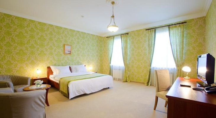 Для размещения гостей обустроены роскошные номера различных категорий, вместимостью до 4 персон. Просторные комнаты, удобные двуспальные кровати, наличие кабельного телевидения — все это предусмотрено для комфорта постояльцев. Также в некоторых номерах имеются: мини-бар, сейф, телефон, доступ к Wi-Fi, собственная ванная комната. Из окон номеров открывается прекрасный вид на набережную и живописный парк.