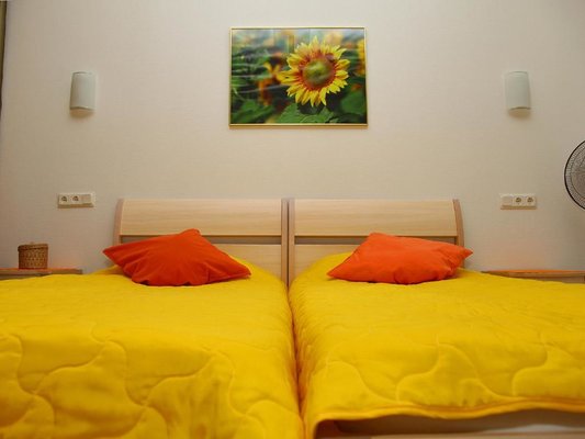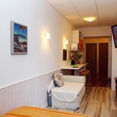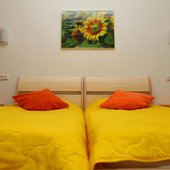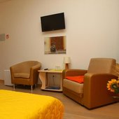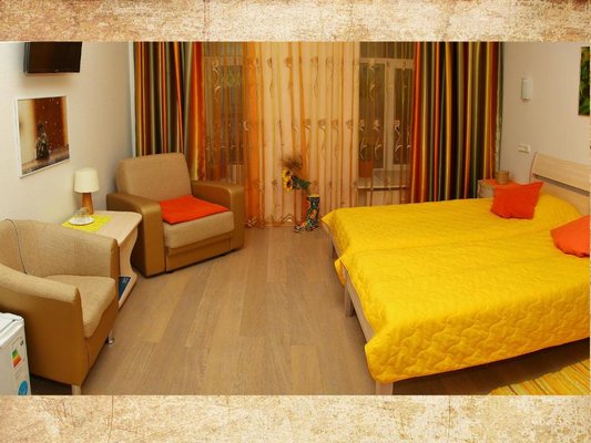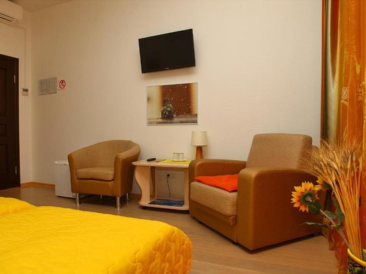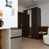 Светлые номера, выполненные в лаконичном стиле, оснащены всеми удобствами для проживания с комфортом. В распоряжении постояльцев будут: кондиционер, стол со стульями, прикроватные тумбочки, телевизор с плоским экраном, собственная ванная, фен, средства личной гигиены.
