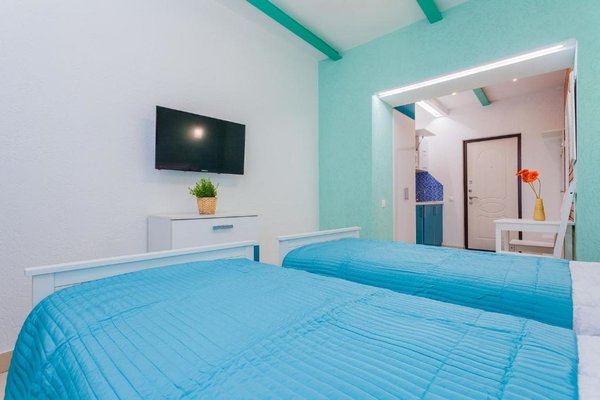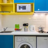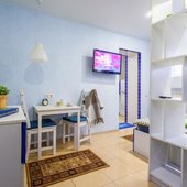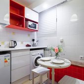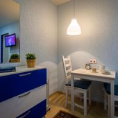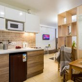 Для размещения предлагаются стандартные и улучшенные апартаменты. Во всех вариантах размещения сделан современный ремонт, установлена эргономичная мебель и современная техника. В ванной есть душ, туалет, раковина, фен, стиральная машина и набор полотенец.