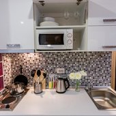 Для приготовления пищи в номерах есть кухня с газовой плитой, микроволновой печью, холодильником, чайником и посудой. Продукты можно приобрести в ближайших супермаркетах. Для тех, кто не хочет самостоятельно готовить, рядом есть множество заведений общественного питания.