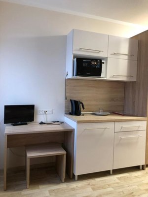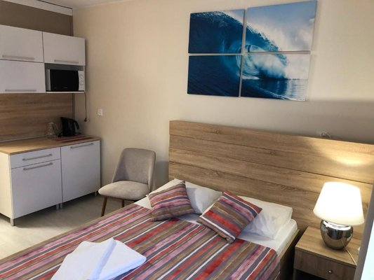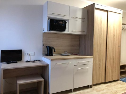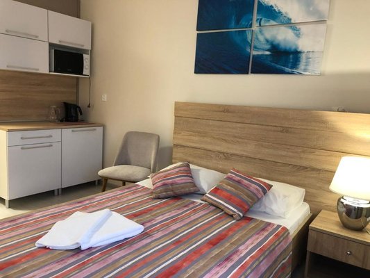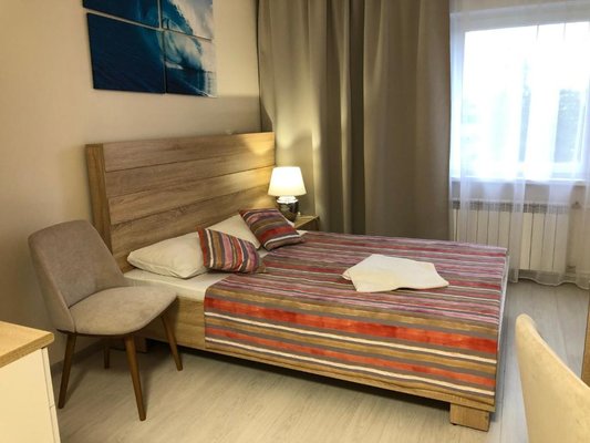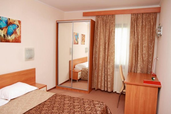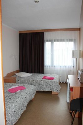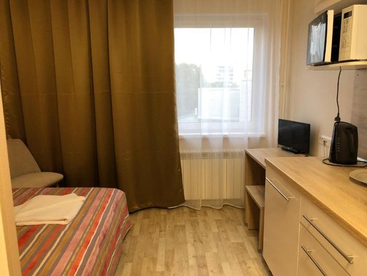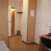 Просторные номера, оформленные в теплых тонах цветовой гаммы, оборудованы всеми удобствами для комфортного проживания и полноценного размещения. В каждом есть: письменный стол со стульями, телевизор, ванная комната, шкаф для одежды.