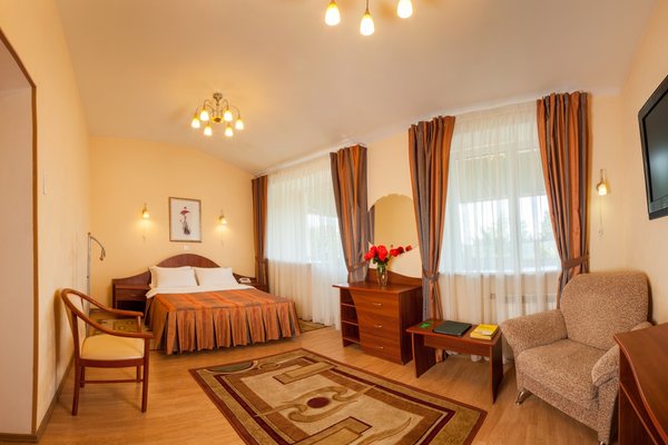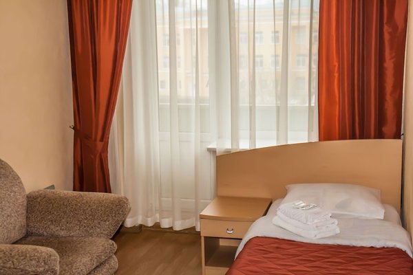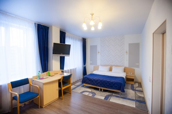 Гостиница занимает отдельно стоящее пятиэтажное здание в центре города Колпино, имеет собственную огороженную автостоянку с видеонаблюдением, ресторан и бесплатный Wi-Fi на всей территории.