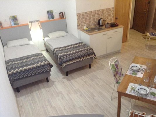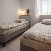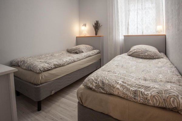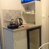 В номерах есть удобная кровать, шкаф для одежды, телевизор, посуда, чайник, столовые принадлежности и ванная комната с душем. Так же предоставляется набор гигиенических средств и полотенца. Бесплатно можно взять фен и гладильные принадлежности.