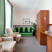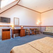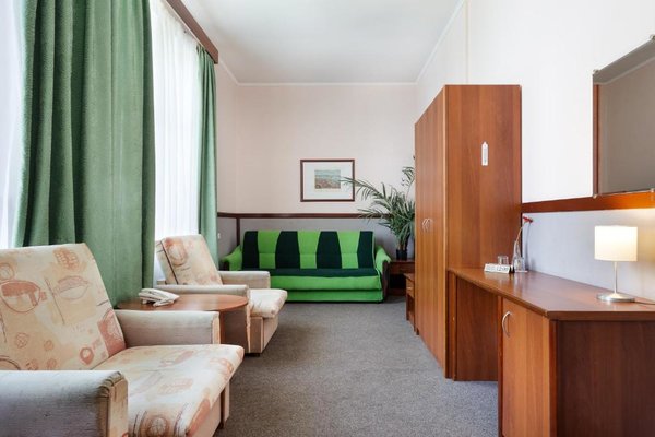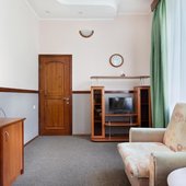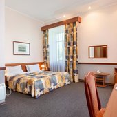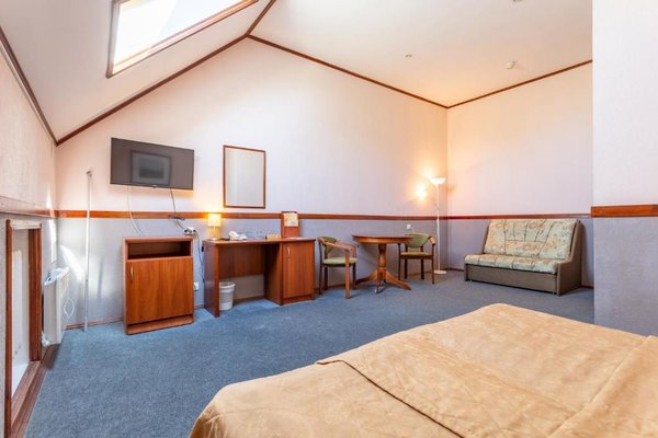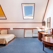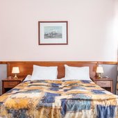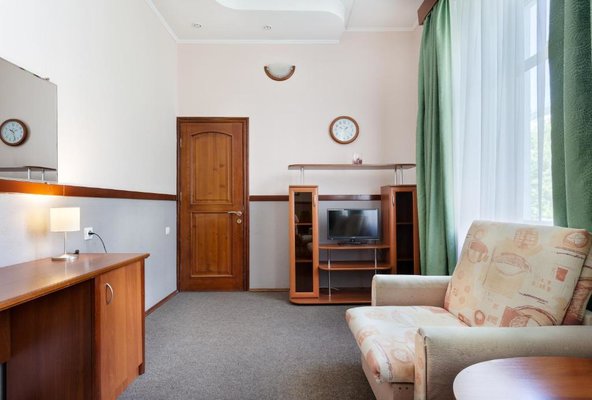 Для размещения постояльцев подготовлены уютные номера, каждый из которых выполнен в приятной цветовой гамме. Категории оснащены удобной мебелью, современной техникой, а также собственной ванной комнатой. Отдыхающие могут посетить сауну и бассейн.