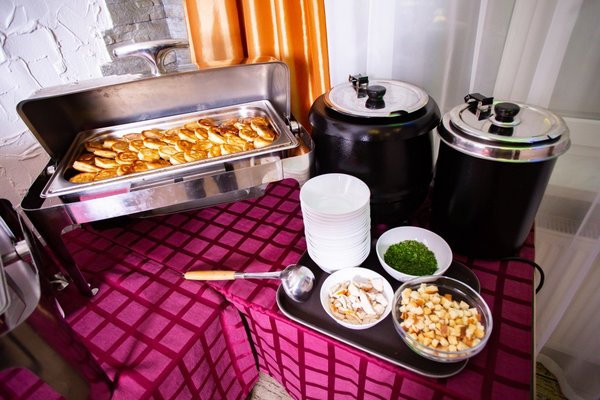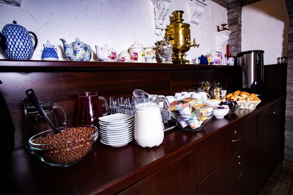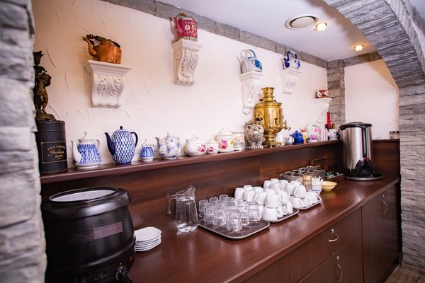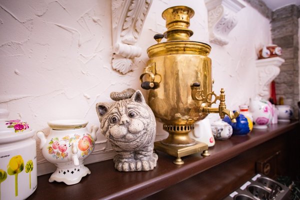 Кафе "Кот у самовара", где подают полезные блюда местной кухни, открыто на завтрак, обед и ужин. Также организуются банкеты, и предоставляются помещения для проведения конференций.