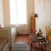 Все номера оформлены в стильном интерьере с использованием ярких элементов, которые надолго останутся в памяти постояльцев. Общая вместимость хостела — до 60 человек единовременно.