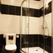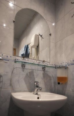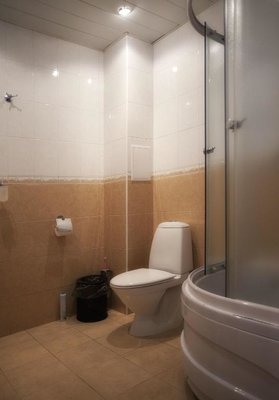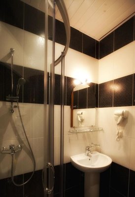 Во всех номерах имеется своя ванная комната с душем, туалетом и раковиной.