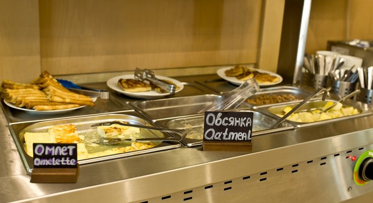 На территории работает кафе, где готовятся блюда домашней кухни, и бар, в котором представлен широкий выбор напитков.