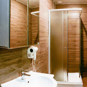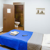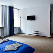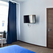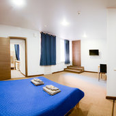 В гостинице выдержан минимализм, вся мебель новая и практичная. В каждом номере имеется удобная кровать двуспальная или две раздельные, а также торшер и стулья. В ванной комнате установлена просторная душевая кабина и представлен набор полотенец.