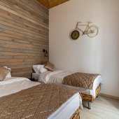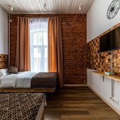 На выбор гостям предоставляется несколько вариантов размещения. Стиль лофт совмещает в себе городскую практичность, фактуру кирпичных стен и деревянные элементы в интерьере. Каждый из дизайнерских номеров оснащён комфортной мебелью, кондиционером и телевизором, персональной ванной комнатой с набором средств личной гигиены, халатом и тапочками. К услугам постояльцев бесплатный Wi-Fi.
