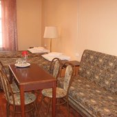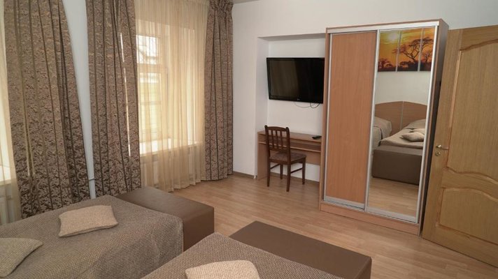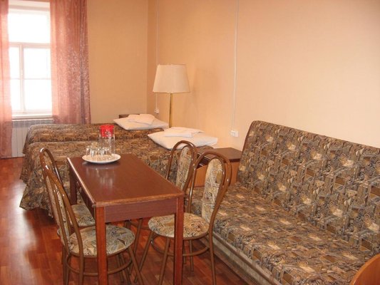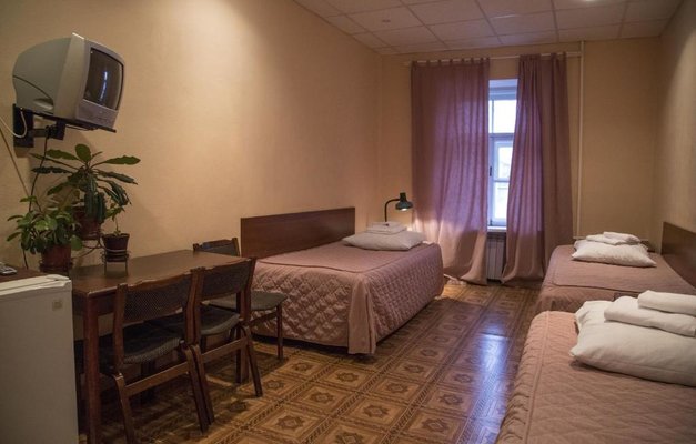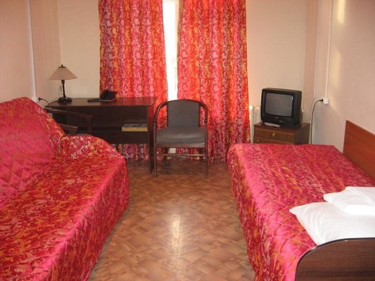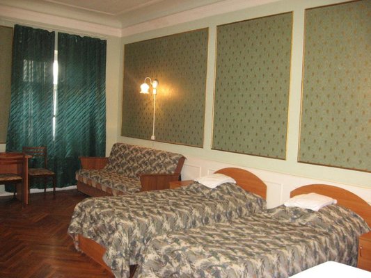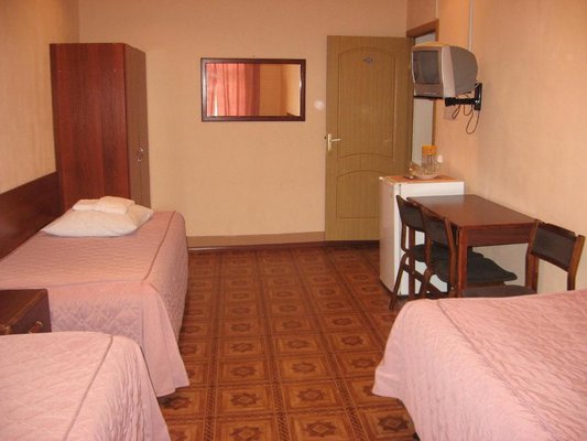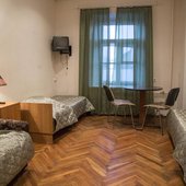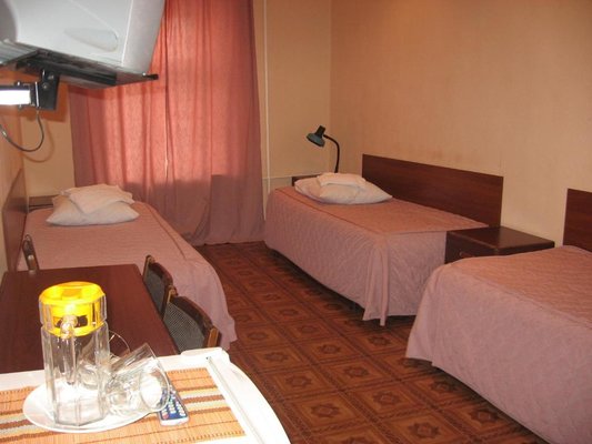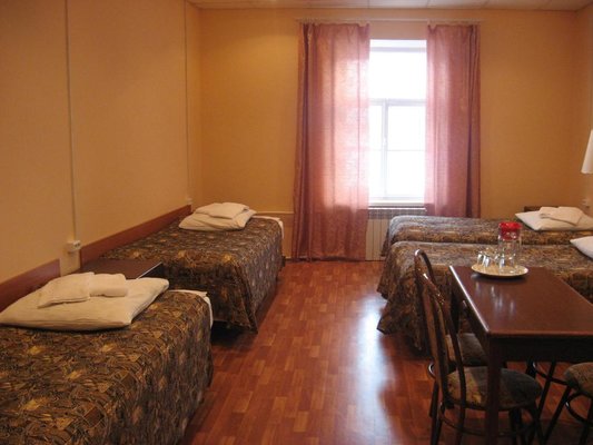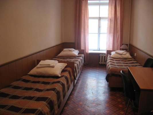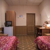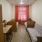 Номерной фонд поделен на несколько категорий. Так, Вы сможете разместиться в трехместном, четырехместном или одноместном номерах. Каждый из них имеет удобную мебель для сна и необходимую технику. А вот удобства общие и на этаже, но в них никогда нет очереди и всегда чисто.