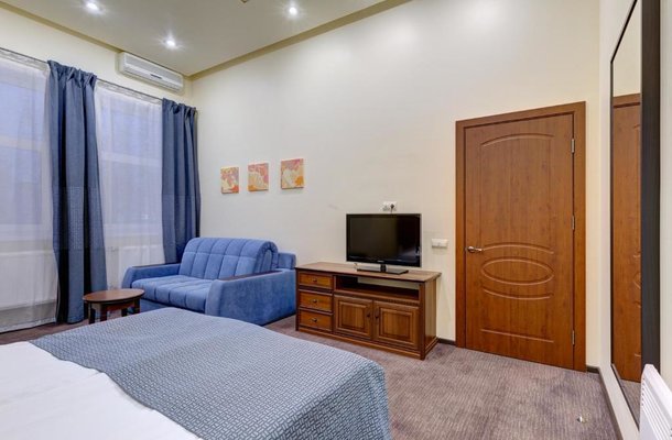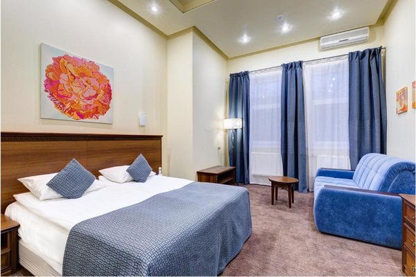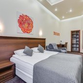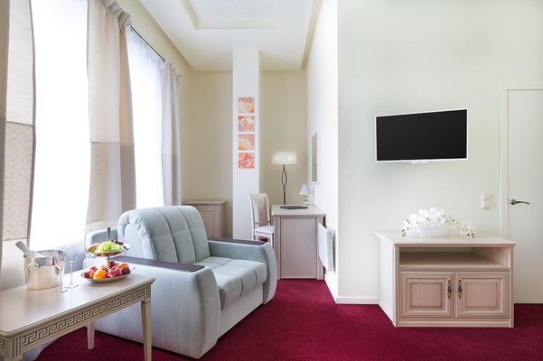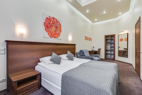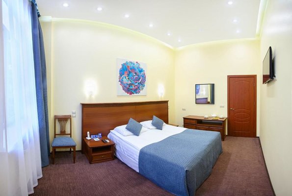 Номерной фонд представлен 35 номерами, оформленными в стиле классики и разделенными на три категории: улучшенный двухместный, полулюкс и люкс. Присутствует все, что требуется для комфортного отдыха, включая электрический чайник с холодильником и феном.