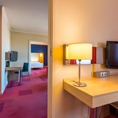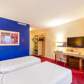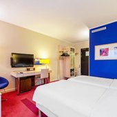 Просторные номера, оформленные в лаконичном стиле, оснащены всеми удобствами для проживания с комфортом. В распоряжении постояльцев будут: телевизор с плоским экраном и спутниковыми каналами, собственная ванная, средства личной гигиены, тапочки, фен.