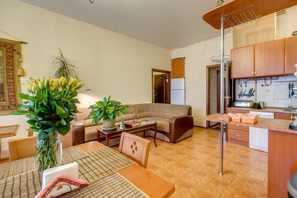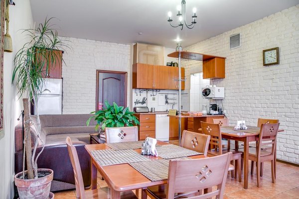 На оборудованной всем необходимым кухне, каждый гость может приготовить блюда самостоятельно. В непосредственной близости от отеля находятся магазины, кафе, пекарни, бары и рестораны.