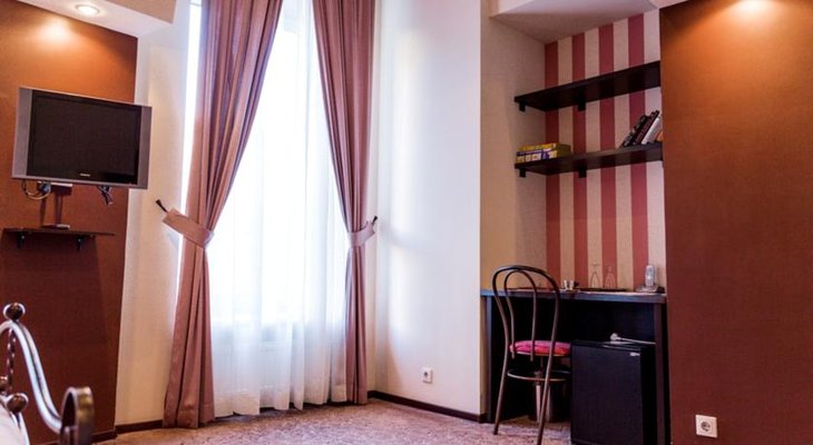 Для постояльцев предлагаются 8 эффектных номеров разных категорий, каждый из которых оформлен в приятной цветовой гамме. В каждом есть все необходимое для комфортного проживания и отдыха. Есть доступ к беспроводному Wi-Fi и гладильным принадлежностям.