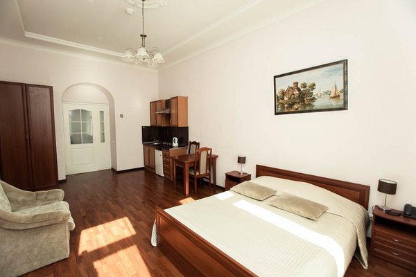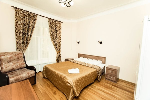 Номера выполнены в неяркой цветовой гамме, поэтому это отличное место для комфортного времяпрепровождения после деловой встречи или семейного отдыха. Желающие могут воспользоваться стиральной машиной или гладильными принадлежностями.