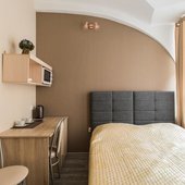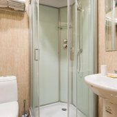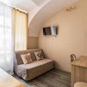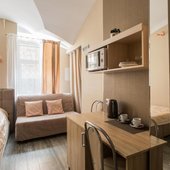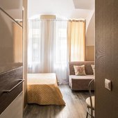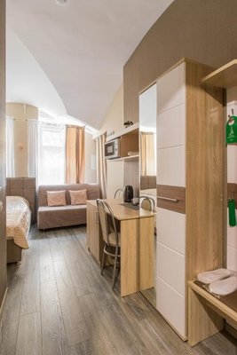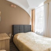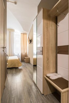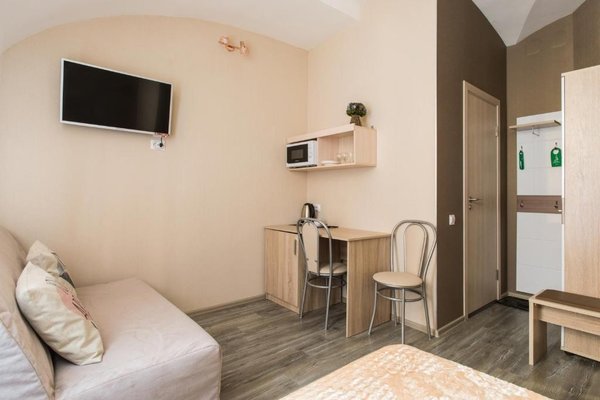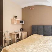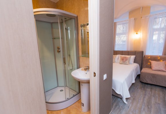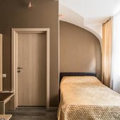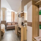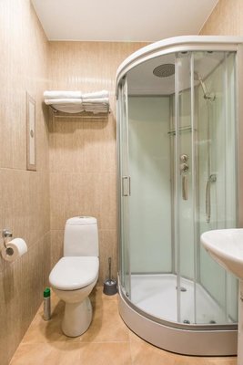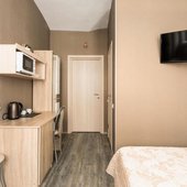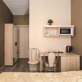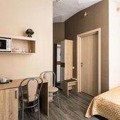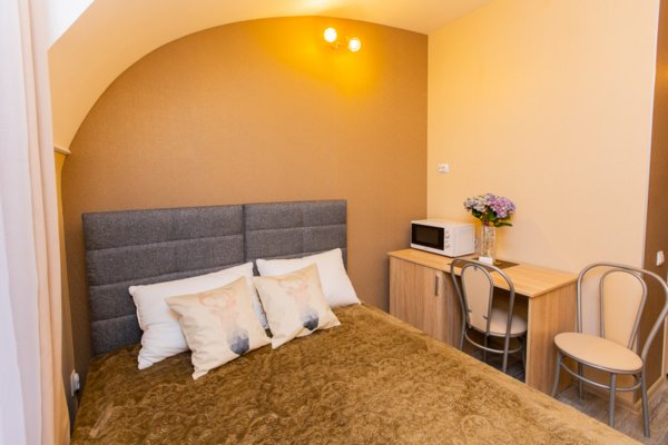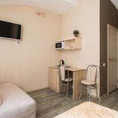 В распоряжении отдыхающих двух и трехместные номера категории "Стандарт". Комнаты оборудованы двуспальными или односпальными кроватями, в номерах "Семейный" имеется раскладной диван. В ванных установлены душевые кабины, раковины и туалет.