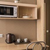 Отдыхающие могут разогреть себе еду с помощью микроволновой печи, а оставить продукты на хранение Вы можете в холодильнике. Рядом с отелем расположено несколько кафе и ресторанов с разнообразной кухней.