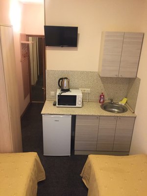 Вы сможете питаться в любом ресторане города, где Вам наиболее понравится меню. Также, в каждом номере имеется своя мини-кухня с небольшим набором посуды и необходимой техникой.