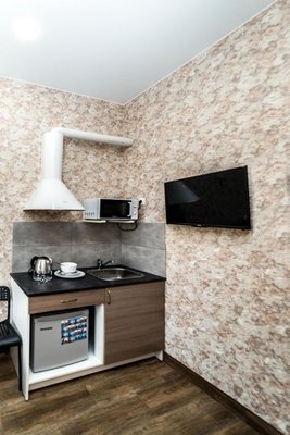 Для размещения предоставляются номера категории Стандарт и Улучшенный. В каждом из них есть телевизор, чайник, холодильник, микроволновая печь и индивидуальная ванная комната.