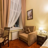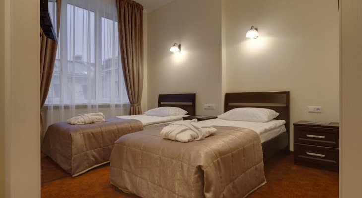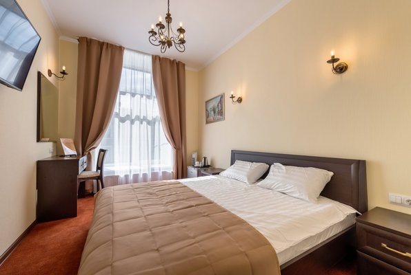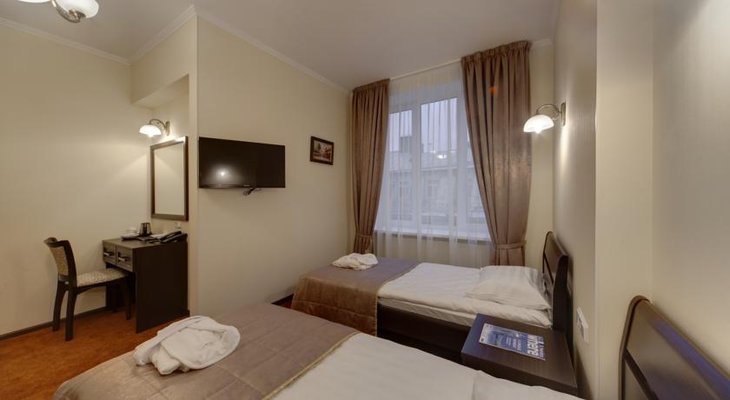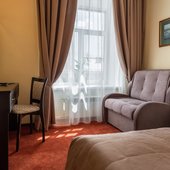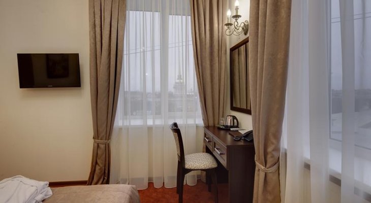 Для размещения гостей предлагаются категории, где есть удобная мебель, современная техника, собственная ванная комната. Все это сделает отдых наиболее комфортным, а времяпрепровождение в Санкт-Петербурге запомнится надолго. Из окон номеров открывается живописный вид на город.