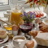 Каждый день в утреннее время для отдыхающих сервируется завтрак. Вкусно и сытно пообедать можно в кафе.