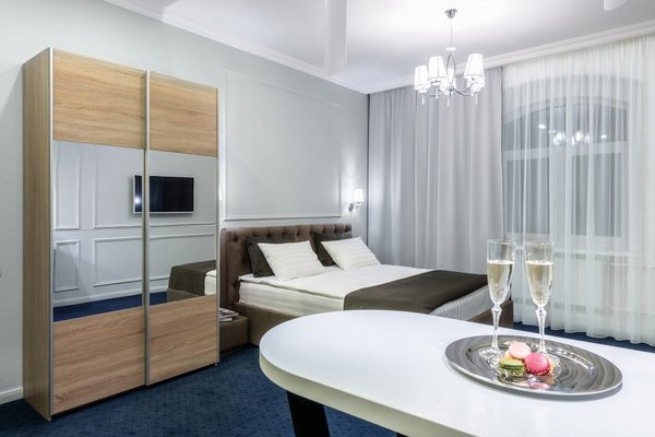 Для размещения подготовлены комфортабельные номера, каждый из который выполнен в приятной цветовой гамме и оснащен всем необходимым для комфортного проживания. Категории оборудованы телевизором с плоским экраном и камином. Ванные комнаты включают в себя бесплатные гигиенические принадлежности. Отдыхающим предоставляются халаты, полотенца и постельное белье.