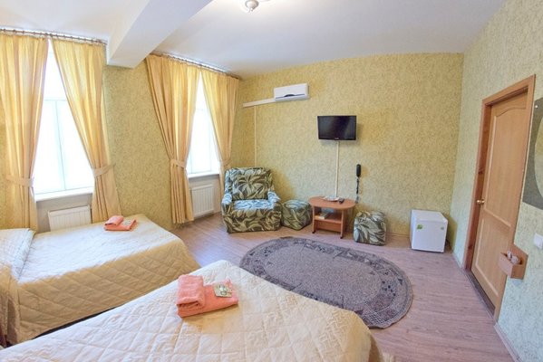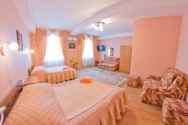 Номерной фонд выполнен в приятной цветовой гамме и включает в себя удобную мебель, а также телевизор, систему кондиционирования, а также ванные комнаты.