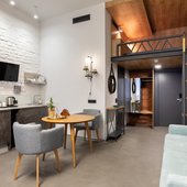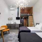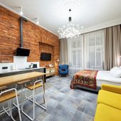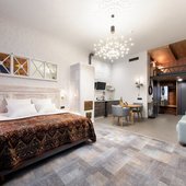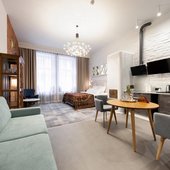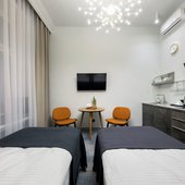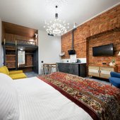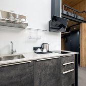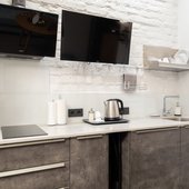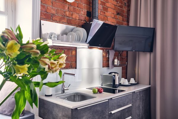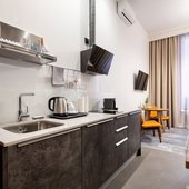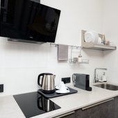 Приготовить любимые блюда постояльцы могут на оборудованной кухне. Если не возникнет желания готовить самостоятельно, то в шаговой доступности расположены многочисленные кафе и рестораны.