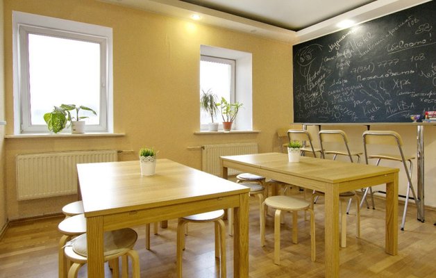 Хостел находится на пятом этаже административного здания. К услугам путешественников номера с удобствами на этаже: 2 двухместных, 2 четырёхместных и 6 восьмиместных номеров, а также два санузла и три душевые.