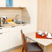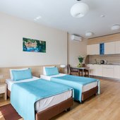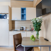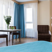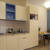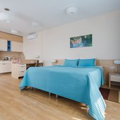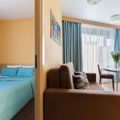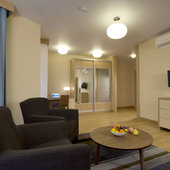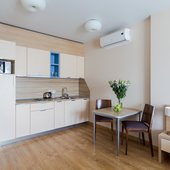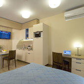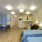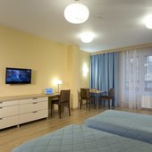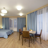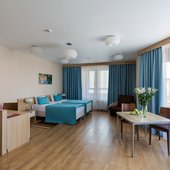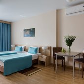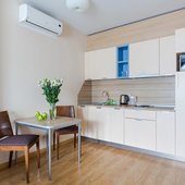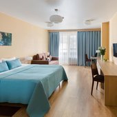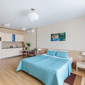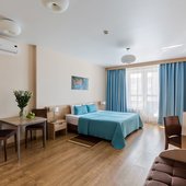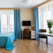 Все номера оборудованы кондиционером, сейфом, полностью обустроенной кухней и просторной застекленной лоджией.
