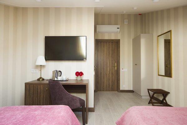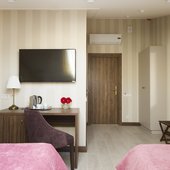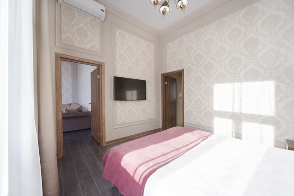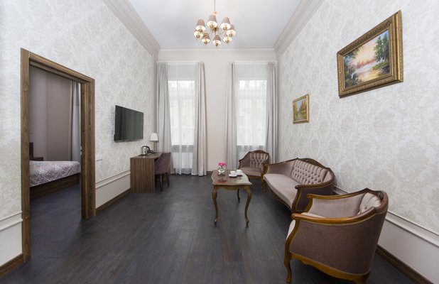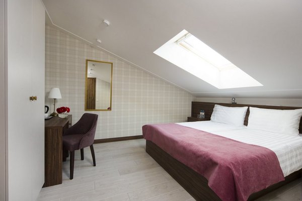 В наличии как однокомнатные номера, так и двухкомнатные (Семейный и Люкс), также для любителей романтики предлагается размещение в мансардных номерах.