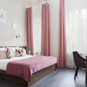 Гранд отель «Чайковский», будучи расположенным в здании, которое является объектом культурного наследия регионального значения, передает атмосферу истинного Петербурга и сочетает её с современным дизайном и технологиями. Оформление 70 номеров 6 категорий, которые способны принять до 170 человек, выполнены в классическом современном стиле, интерьер радует глаз и создает атмосферу уюта и комфорта.
