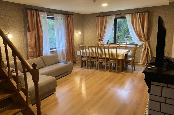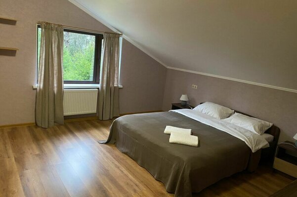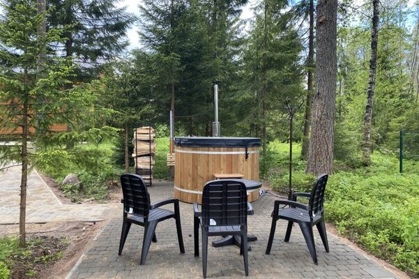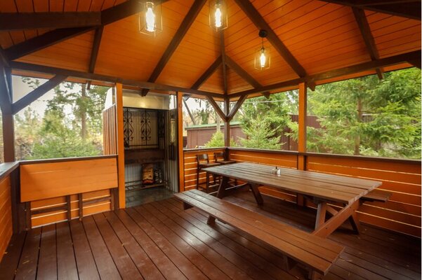 На территории есть детская площадка с горкой и качелями, уютные беседки, мангалы и большая охраняемая парковка. Для полного расслабления предлагаем сауну и купель Фурако (за дополнительную плату).