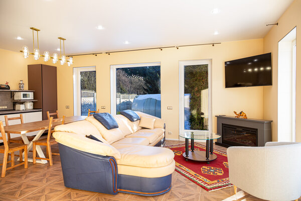 Насладитесь отдыхом на просторной террасе второго этажа, приготовьте шашлыки на мангале, или окунитесь в атмосферу настоящей русской бани (за дополнительную плату). Свежие яйца из собственного курятника станут прекрасным дополнением к вашим завтракам.