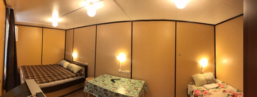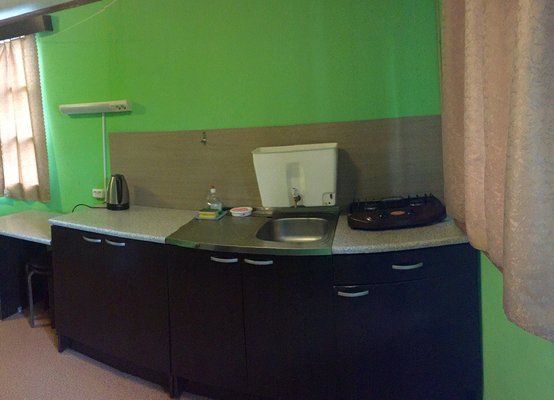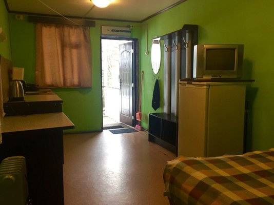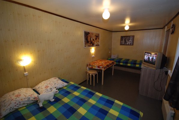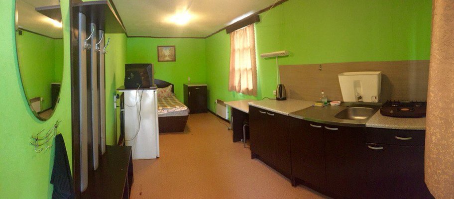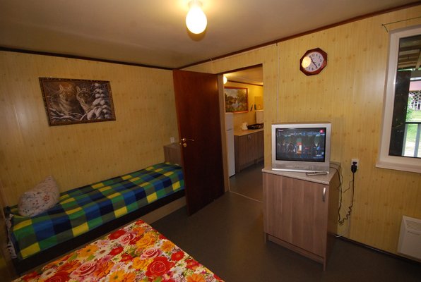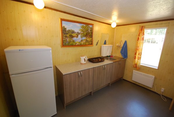 В каждом домике есть кухня с газовой плитой, набором посуды (кастрюля, чайник, сковородка), умывальником, раковиной и холодильником. Также в каждом домике установлен телевизор.