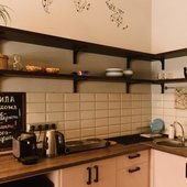 Кухонная зона полностью оборудована для самостоятельного приготовления еды. Поблизости есть продуктовые магазины, кафе, рестораны.