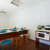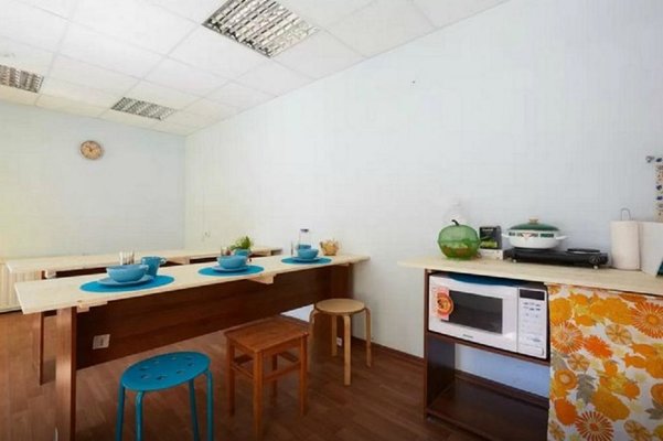 На первом этаже имеется общая кухня, которая укомплектована всей необходимой бытовой техникой и посудой. Отдыхающие могут воспользоваться ей и приготовить любимые блюда.