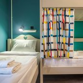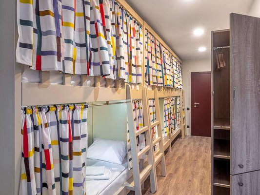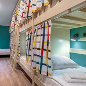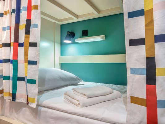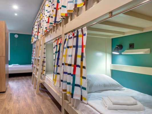 Яркие номера привлекают гостей своей непринужденностью и чистотой. Здесь есть двухъярусные кровати, индивидуальные светильники и розетки.