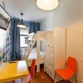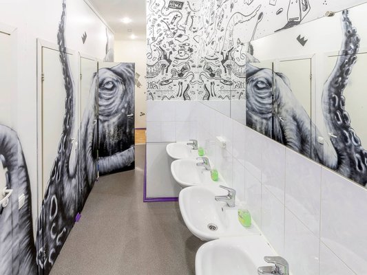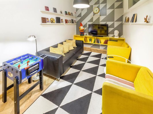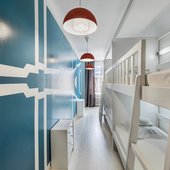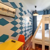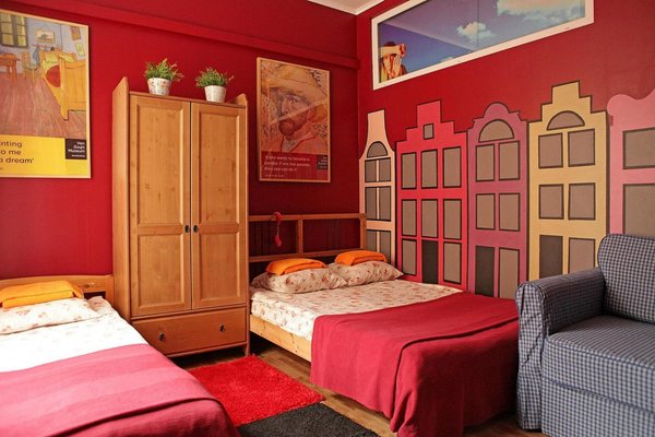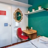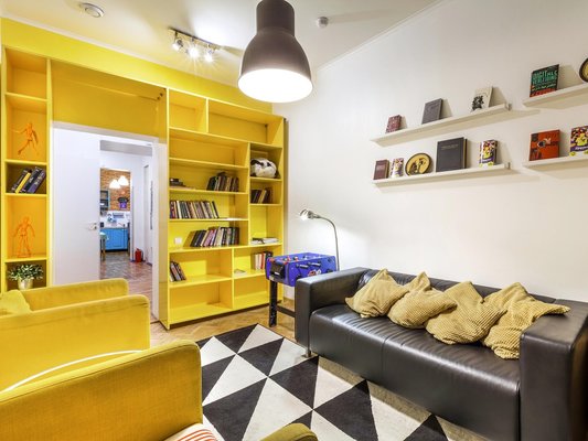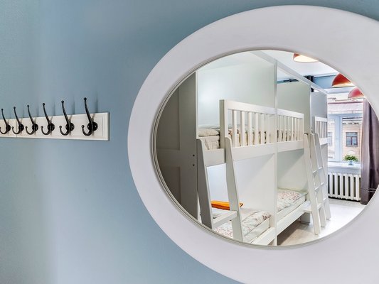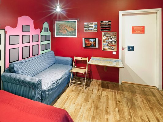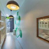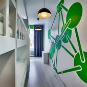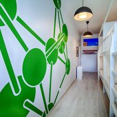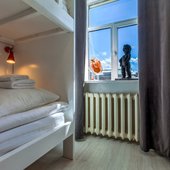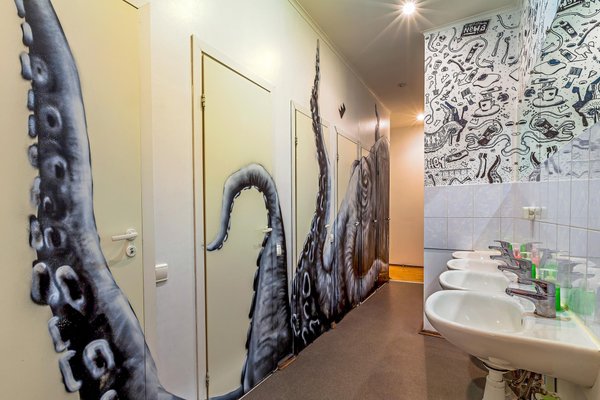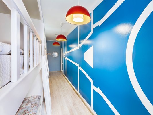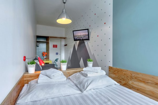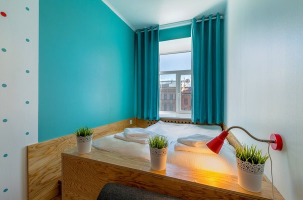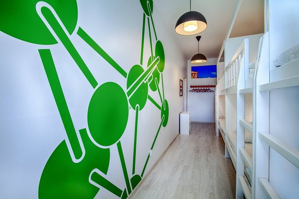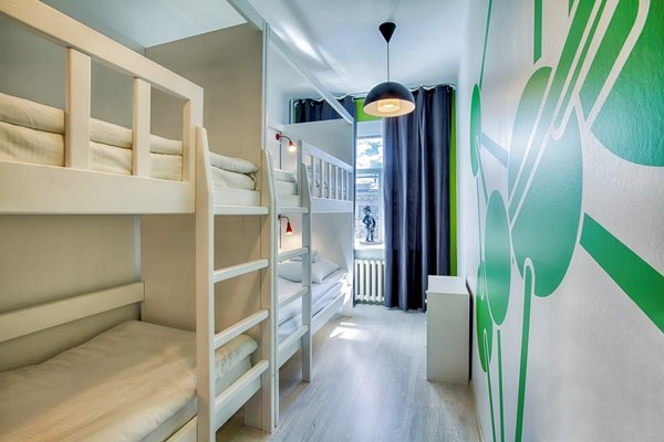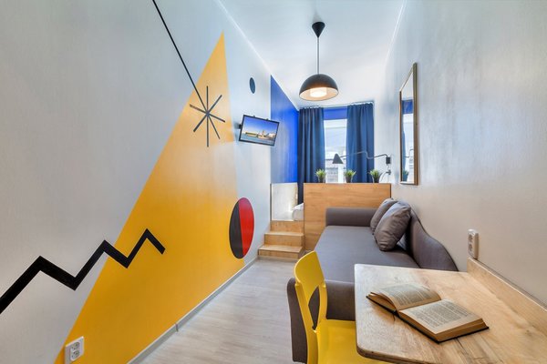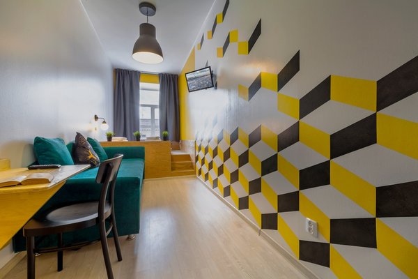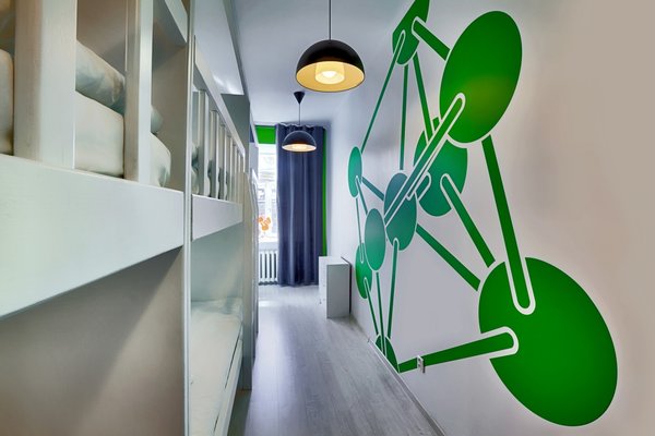 Номера отличаются необычным современным дизайном. В некоторых имеется все необходимое для проживания: двухъярусные или двуспальные кровати, столы, стулья, тумбы, шкафы, диван, телевизор. В многоместных апартаментах удобства предусмотрены на этаже.