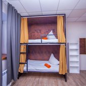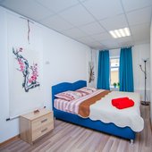 Предлагается размещение в общем или отдельном номере с современной отделкой в ярком, неординарном стиле. В интерьере используются эксклюзивные декоративные элементы, это делает его оригинальным и неповторимым. Вернувшись сюда в конце дня, Вы сможете расслабиться и отдохнуть.