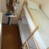 Номера выполнены в уникальном дизайне. Имеются двухъярусные кровати с занавесками, лампа для чтения возле каждого спального места, шкаф и вешалки для хранения вещей. Также есть необходимое количество розеток и осветительных приборов, на полу постелен линолеум. Бесплатный интернет.