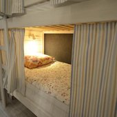 Номерной фонд представлен как многоместными, так и двухместными номерами. Все удобства расположены на этаже. На всей территории работает бесплатный Wi-Fi. Уютные и светлые комнаты выполнены в современном стиле, кровати в комнатах имеют шторки для удобства отдыхающих.