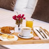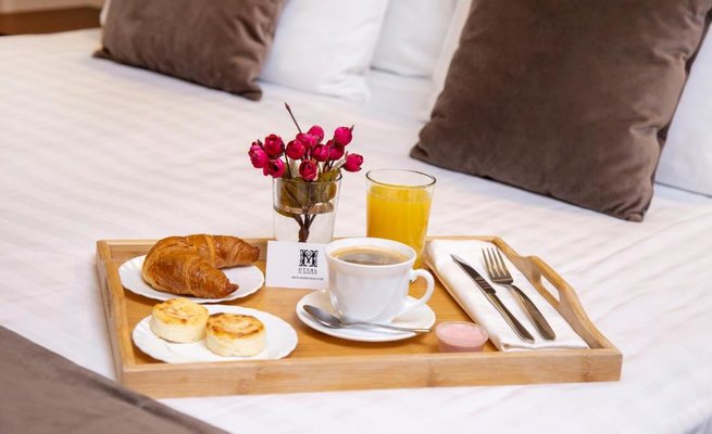 По желанию предоставляются свежие и разнообразные завтраки, включающие в себя овсяную кашу, омлет, блинчики с начинкой на выбор, оладьи, пирожные, сендвичи и др.