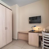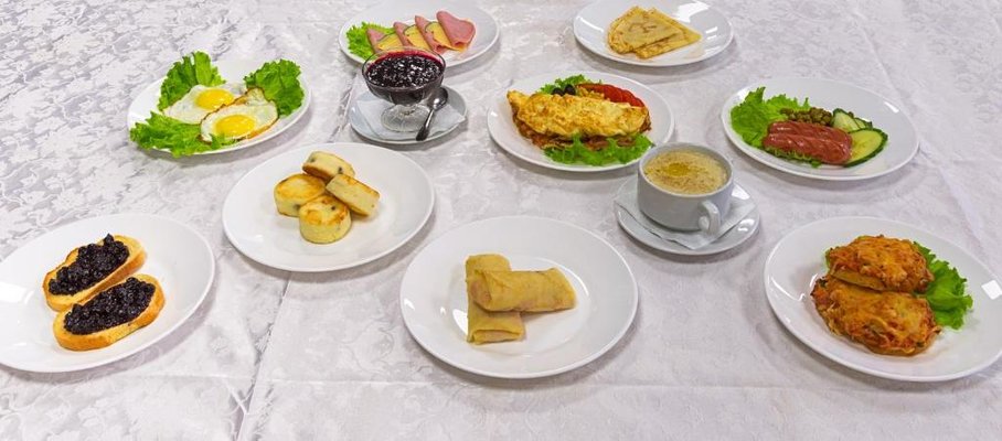 В отеле, как сказано выше, предусмотрен буфет, в котором представлен широкий ассортимент блюд и напитков. Неподалеку от отеля расположено несколько ресторанов, кафе и столовых, где гости смогут разнообразить свой рацион питания. Рядом находятся продуктовые магазины.